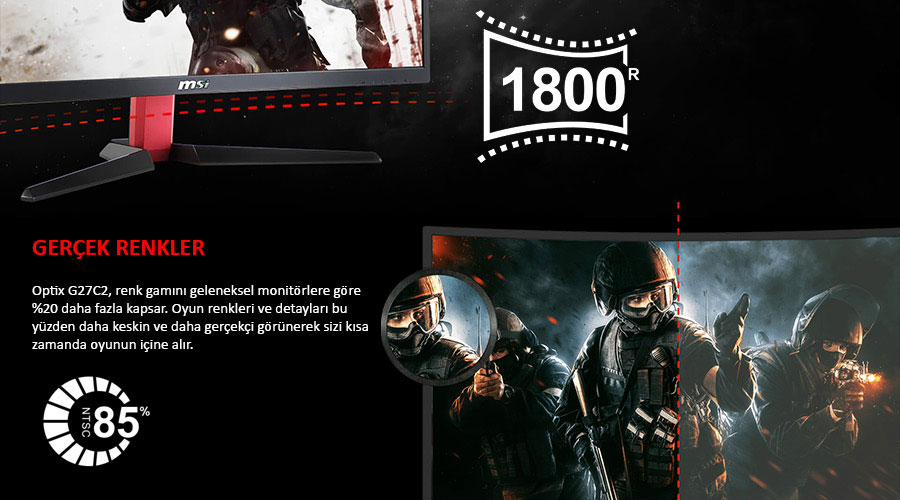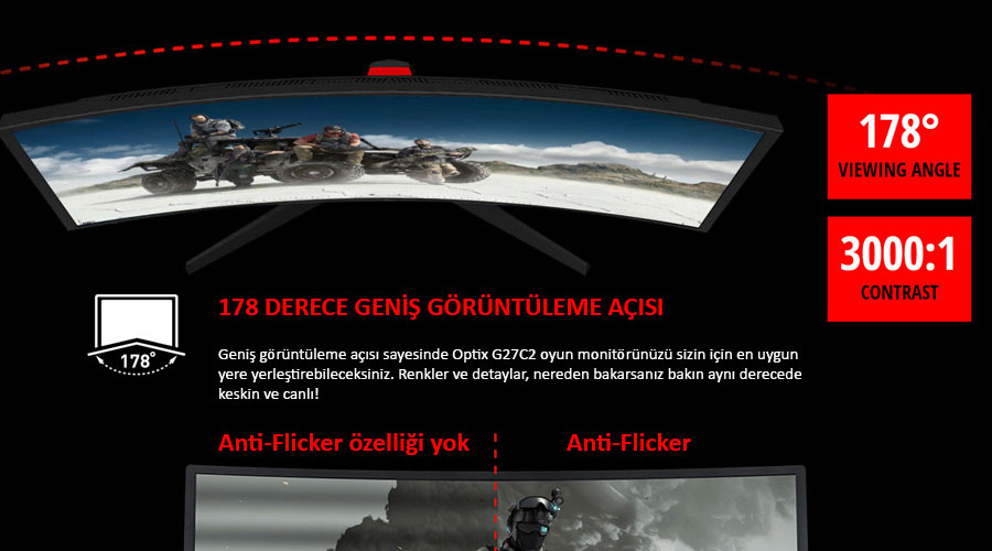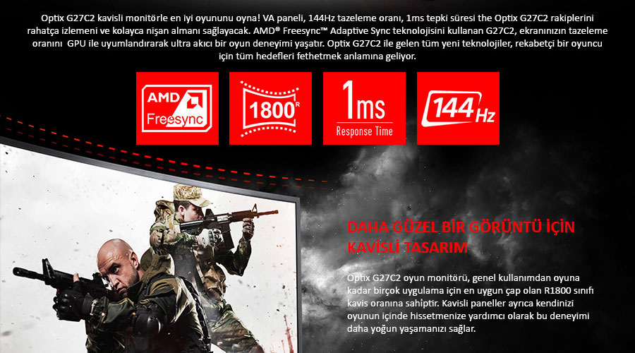 MSI Optix G27C2 27'' 144Hz 1MS CURVED FSNC LED Monitör